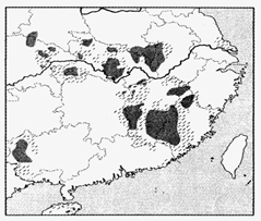 19.右图是一位同学在研究性学习中使用的一幅地图。据此图阴影部分判断,这位同学的研究课题最有可能是