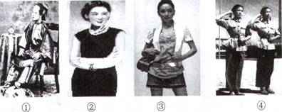 15.服饰是一种文化形态,贯穿了人类社会发展的各个时期。每个时代都有自己典型的服饰,引领着时尚。请你将下列四幅图片按时间顺序重新排列:( )