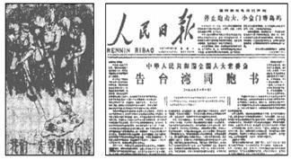 24.1979年,全国人大常委会发表《告台湾同胞书》,宣布采用和平方式统一祖国的方针。从下面两图的转变,说明