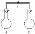 如图所示,室温下,A、B两个容积相等的烧瓶中分别集满了两种气体(同温、同压),当取下K夹,使两烧瓶内气体充分接触后,容器内压强由小到大的顺序正确的是
