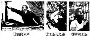 (1) 图①为新经济政策时期的海报,指出图①和图②所含信息之间的联系。比较这一时期的工业政策与以后斯大林工业化政策有何不同7试从理论和实践的视角评价新经济政策。(8分)
