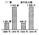 材料一 1888-1894年日本工厂和蒸汽机数量增长示意图。