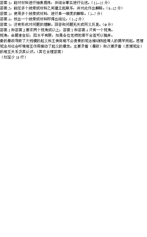 (3)从历史的角度,你如何看待上述材料中刘邦.项羽.陈胜等人的起义?(15分)