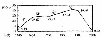 13、[安徽省蚌埠市2011届高三第一次教学质量检查]对下图反映的世界殖民地占全球陆地(南极洲除外)面积的比例(%)变化的解读,不正确的是