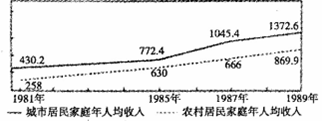 15、[安徽省蚌埠市2011届高三第一次教学质量检查]下图是我国某地城乡居民年人均收入表,图中的城乡差距最小年的出现是因为