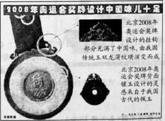 10.在北京奥运会倒计时500天之际,北京奥组委在首都博物馆发布了2008年奥运会奖牌式样,奖牌在传统的金属牌上镶嵌了中华美玉(见右图)。这一创造性的做法