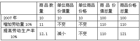 2008年:1.5单位商品 单价10元 总量15元(社会劳动生产率提高50%)