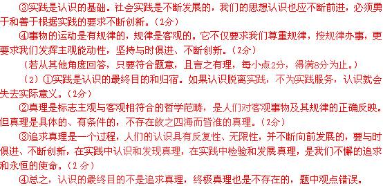(2) 有人认为:“认识的最终目的是追求放之四海而皆准的终极真理”。试对此观点加以评析。(6分)
