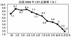 18.(2010年杭州模拟)2008年的国际国内经济形势,可谓一波三折、跌宕起伏。我国的宏观经济政策,也随着动荡的经济形势,不断作出适应性调整。从年初的“防止经济增长由偏快转为过热、防止价格由结构性上涨演变为明显的通货膨胀”的“两防”政策,到年中提出要“保持经济平稳较快发展,控制物价过快上涨”的“一保一控”政策,再到年底“货币政策在近期要防止通货紧缩,在长期要防止通货膨胀”的“灵活审慎”政策,其调整幅度之大和政策转向之快是不常见的。
