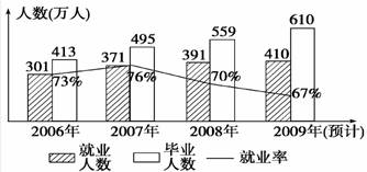 材料二:在全球金融海啸冲击下,我国东部沿海的许多企业纷纷倒闭,农民工就业形势更加严峻。目前我国农村外出就业的农民工已超过1.3亿人,考虑到部分返乡农民工暂时失去工作,加上农村部分新成长劳动力,今年需要新就业的农村劳动力在2 000万人以上;而计划招工的企业与去年相比减少了20%,空岗数量减少10%;企业要求新招员工具有高中以上文化程度和中级工以上技能的比重又分别上升了2个百分点和2.6个百分点