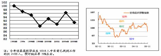 图1:N县近期高校毕业生就业率运行态势图 图2:我国近期宏观经济运行态势图