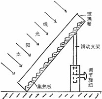 北京(40°N)某校-学生在研究性学习活动中,对太阳能热水器进行了重新设计(如图),把热水器装在一个大玻璃箱中,并将支架改造成活动方式。据此完成3--5题