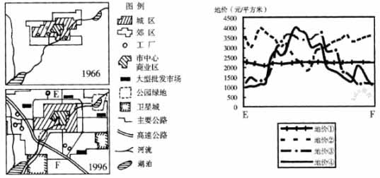 下图是某城市1966 -- 1996年发展示意图,读下面两幅图,回答9--11题