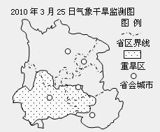 西南五省地形复杂,民族众多,物产丰富,又是祖国的边陲地区和大后方,战略位置十分重要。2009年秋季以来,西南五省区5千万人遭受旱灾经济损失超190亿,旱情极为严峻。党中央、国务院十分重视,要求各级政府要把抗旱救灾工作作为当前工作的重中之重,切实抓好,落实到位。读图和材料,回答问题。