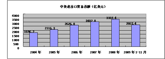 近年来,中美经贸关系总体保持稳定并且取得重要进展,2009年中美进出口贸易总额减少。(2分)