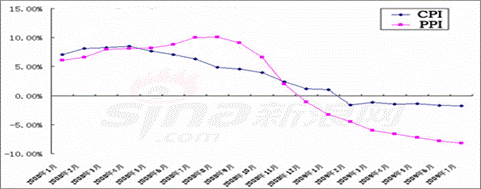 3、材料一:2008年1月一2009年7月我国CPI和PPI指数的变化情况图 ![]()