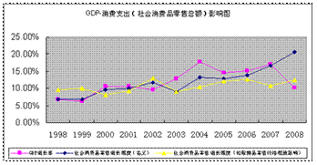 材料二:GDP-消费支出(社会消费品零售总额)影响图