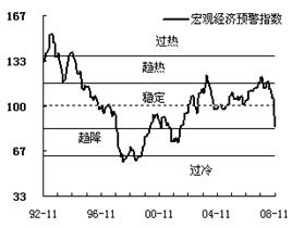 图1:我国宏观经济景气指数趋势图 图2:我国宏观经济预警指数趋势图