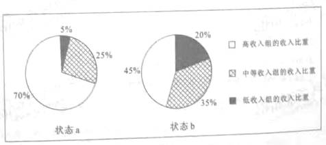 33.(北京卷)按收入高低把总人口等分为高、中、低三组,图8所示为各组收入占总收入比重的两种不同状态。下列做法有利于由状态a向状态b转变的是(A)![]()