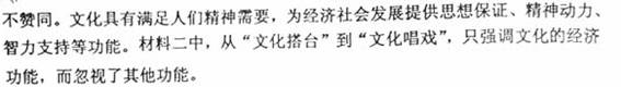 根据材料,有人认为,从“文化搭台”到“文化唱戏”,体现了人们对文化功能认识的深化。你赞同这种看法吗?运用文化知识简要说明理由。(8分)