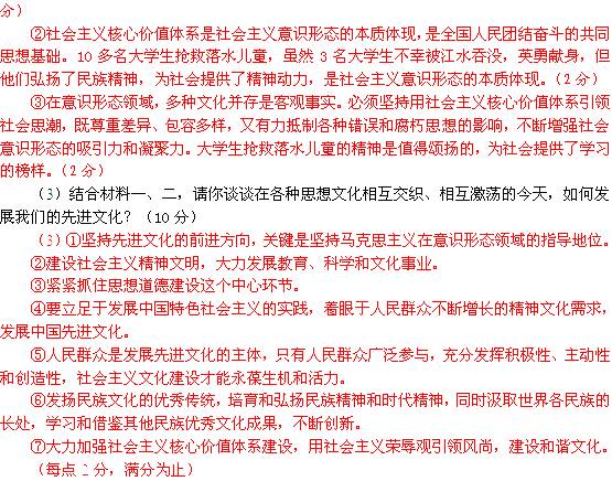 (1)请用《文化生活》的有关知识,说明上述试题内容体现了社会主义核心价值体系建设的哪些要求?(10分)