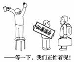 解析 解答漫画题要细读漫画,同时注意漫画中的文字提示。图中的“优质服务”仅作为标语写在牌匾上,工作人员手捧“优质服务”而行劣质服务。故B项符合题意。