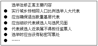 (2010届北京市东城区高三综合练习)选举法是保障公民依法行使选举权和被选举权,依法产生各级人大代表的重要法律。回答1-3题。