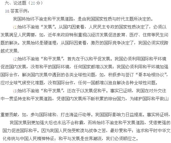 运用政治常识,结合国内外因素。阐述对“我国将始终不渝走和平发展道路”的理解。