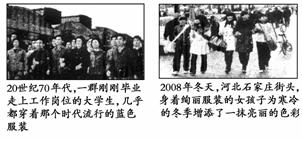 [解析] 材料中的两幅图反映了改革开放三十年我国社会物质生活的变化及由此引起的人们衣着观念的变迁,①②正确;③错误;④与题意无关。