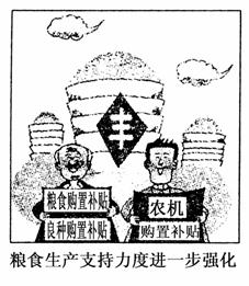 解析:漫画的题目为“粮食生产支持力度进一步强化”,反映了财政支持农业生产、促进经济发展的作用。