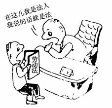 解析:从图中的文字可知,图中的两个人分别代表厂长与职工,漫画中厂长所说的“在这儿我是法人,我说的话就是法”表明他无视《劳动法》等法律制度,肆意践踏职工的权益,这样的厂长没有正确行使自己的职权。