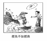 15.读漫画《授鱼不如授渔》。据此回答下题。