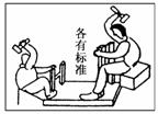 12.下面漫画《各有标准》,启示我们想问题、办事情,必须 ( )