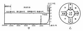 17.读人类社会演进和人地关系两幅示意图,回答问题。