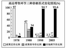 答案:(1)题图表明随着计划经济体制转变为市场经济体制,商品零售环节由政策定价占主导地位逐渐演变为市场调节定价占主导地位,市场在资源配置中逐步发挥基础性作用。