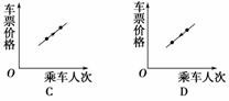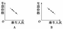 解析:价格影响供求,公交车票价格与乘车人次成反比,由此排除C、D。A体现的是车票价格下调乘车人次增加,B体现的是车票价格上涨乘车人次减少,故A符合题意。