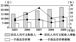 信息一 2005-2009年A市居民可支配收入和房价变动情况