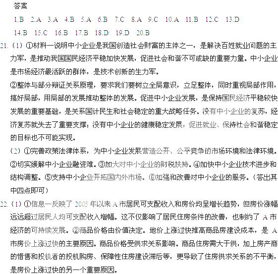 (2)随着A市房产新政的出台,有人认为,通过政府的宏观调控,A市的房价定能稳定下来。请你选用一个哲学原理,对此观点加以评析。(8分)