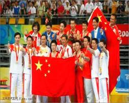 请你观看右边的图片,图片是中国男子体操队在2008年北京奥运会上夺得奥运冠军的情景,中国男子体操队夺冠说明了( )