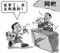 吧主:(面带微笑)小朋友,遇到不高兴的事了吧?进来坐坐,我们新安装了最有趣、最刺激的游戏,保证让你很快忘记烦恼。放心,新顾客前10天免费体验。