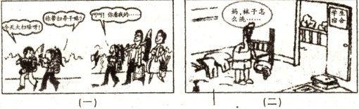 (2)针对漫画(一)和漫画(二)中所反映的问题,谈谈你的看法。(4分,至少从两个方面)