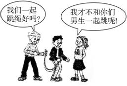 解析:图中展示的女孩不能以恰当的方式与男同学交往。真诚、尊重是交往的前提。只有真诚相待,彼此尊重,交往、相处才会自然顺畅,才能建立和发展真挚的友情。在男女同学交往中,男同学要尊重女同学,要热情大方,举止文明,不要使女同学难堪;女同学也要尊重男同学,不要娇气或清高自傲。