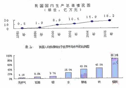 (2)根据上述图表所显示的信息,谈谈实现“十一五”期间单位GDP能耗比“十五”期末降低20%左右指标的主要经济措施。(6分)