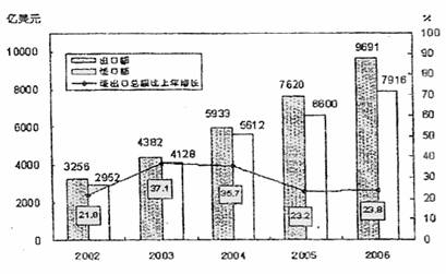 37.材料一:2002年-2006年我国进出口总额及增长幅度情况