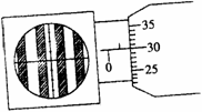 时,装置调整好后,在用测量头确定第一条明条纹中心的位置时,测量头上的螺旋测微器的读数如右图所示,大小是________mm;若再调到连续相邻的第六条明条纹的中心上,需将分划线水平移动距离为_______mm。