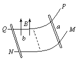 (20分)如图所示,平行导轨MN和PQ相距0.5m,电阻可忽略.其水平部分是粗糙的,置于0.60T竖直向上的匀强磁场中,倾斜部分是光滑的,该处没有磁场.导线a和b质量均为0.20kg,电阻均为0.15