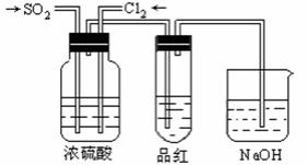 ①指出在气体进入品红溶液之前,先将SO2和Cl2通过浓硫酸中的目的: