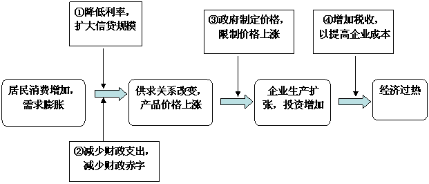 10. 图横向箭头显示的是某国经济扩张过程,不同阶段有相应的宏观调控手段。