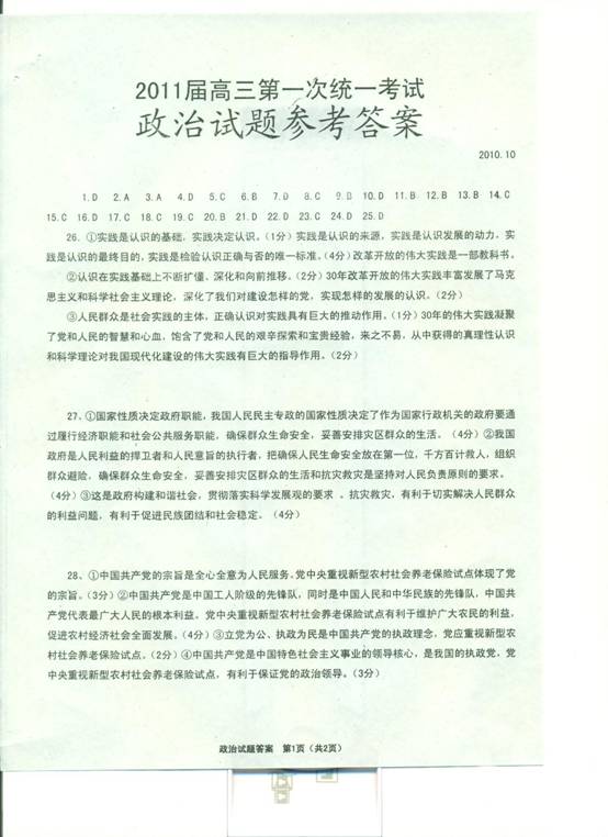 结合材料,用政治常识分析党中央为什么高度重视新型农村社会养老保险试点?(10分)