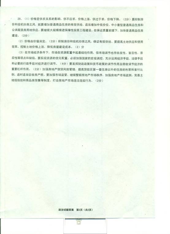 29.“安居才能乐业”,“住房贵、住房难”成为几年来老百姓最关一心的问题。当前,我国房地产还存在一定的问题,如:2007年前十一个月房屋竣工面积3.5亿平方米,增长11.1%,而商品房销售面积速5亿多平方米,增长21.5%;土地成本最终会打入房价,高地价客观上推高房价;“炒风”乘势而起,投机者购进几套住房,一些楼盘完工后迟迟不开盘卖等等。2009年下半年至2010年上半年高房价和炒房之风更加严重。为此,国务院出台“国四条”抑制房价和投机炒房之风,保证有效供给。一要增加普通商品住房的有效供给。适当增加中低价位,中小套型普通商品住房和公共租赁房用地供应,提高土地供应和使用效率。在保证质量前提下,加快普通商品住房建设.二要继续支持居民自住和改善住房消费,抑制投资投机性购房,三要加强监管。继续整顿房地产市场秩序。加强房地产市场监测,完善土地招拍挂乖商品房预售等制度。加强房地产信贷风险管理,要继续支持居民自住和改善住房消费,抑制投资投机性购房,回大差别化信贷政策执行力度,切实防范各类住房按揭贷款风险.四要继续大规模推进保障性安居工程建设。力争到2012年末,基本解决1540万户低收入住房困难家庭的住房问题。